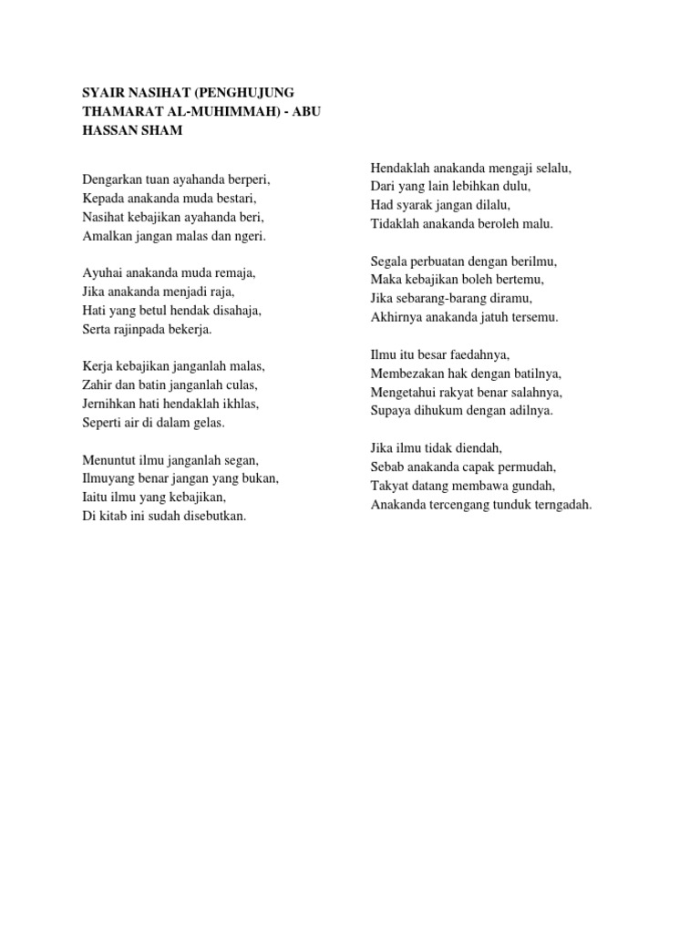 Syair Nasihat Penghujung Thamarat Al Pdf