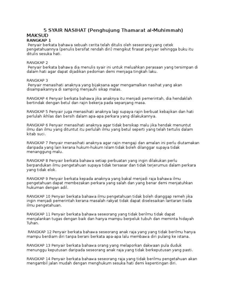 Maksud Tema Persoalan Nilai Pengajaran. Syair Nasihat Penghujung Thamarat al-Muhimmah Maksud. Syair Nasihat Penghujung Thamarat al-Muhimmah Rangkap.